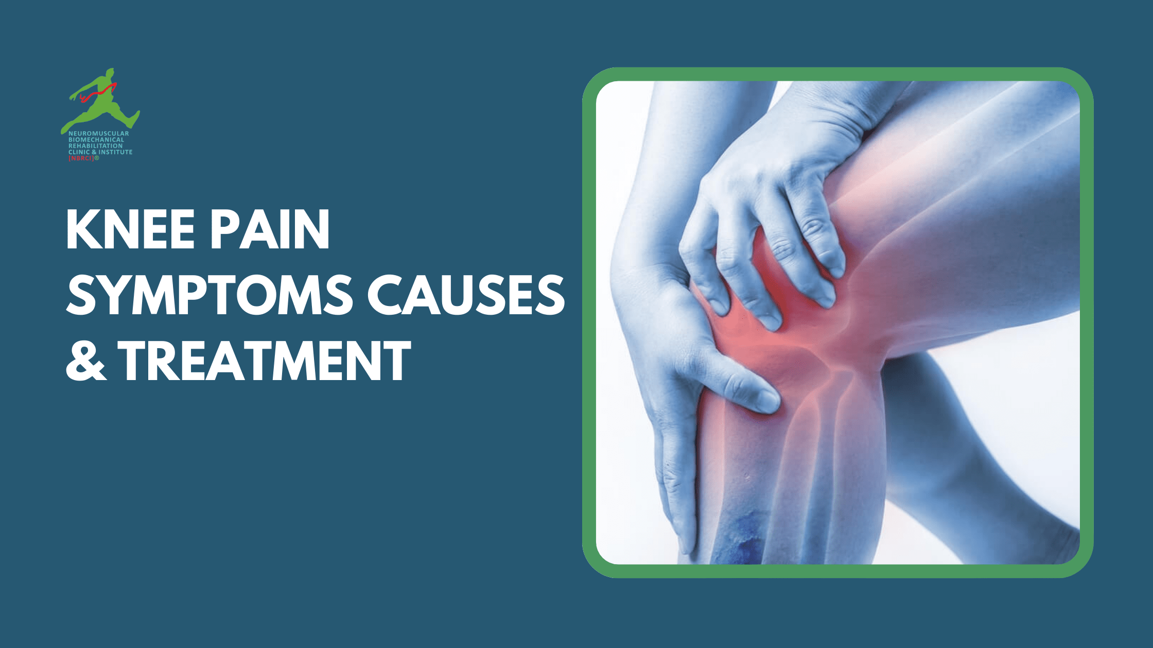 • Knee arthritis symptoms infographic showing pain, swelling, stiffness and limited mobility – NBR Clinic